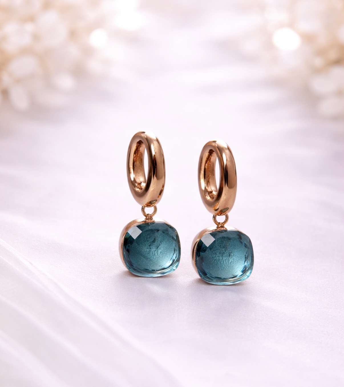 Qudo Ohrringe – Aqua  in Rosé Gold